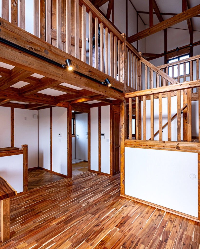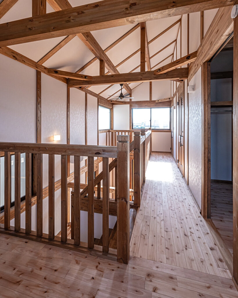 木のぬくもりあふれる「真壁づくりの家」。