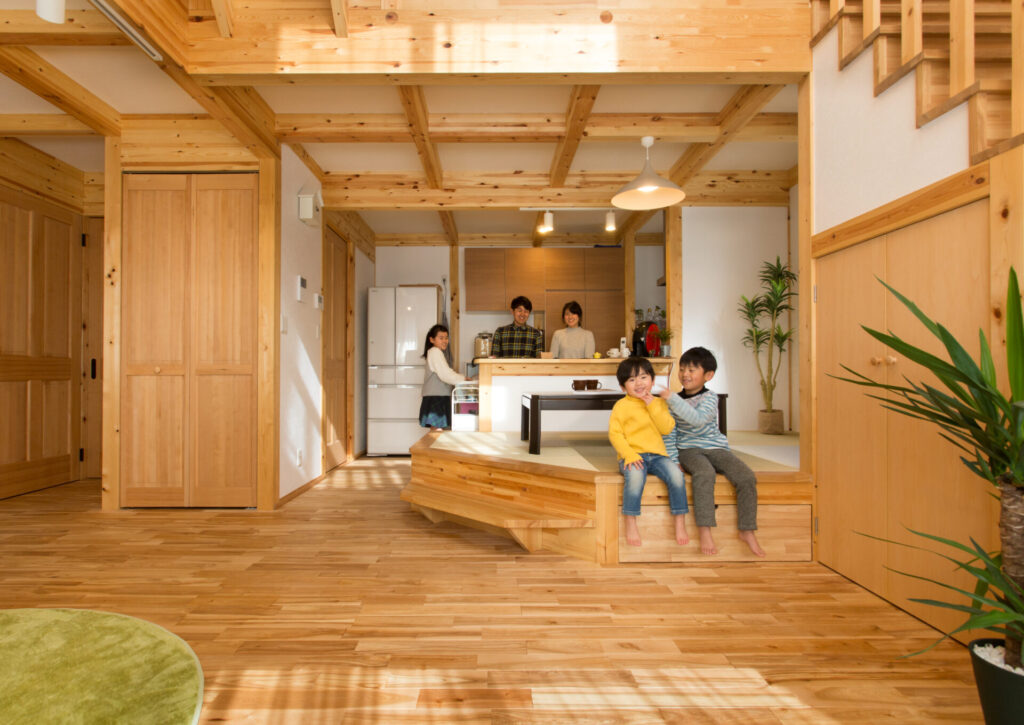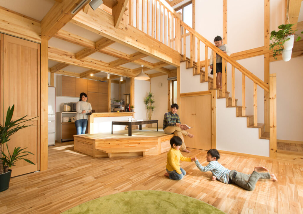 「家族が繋がる温かい木と畳の空間」