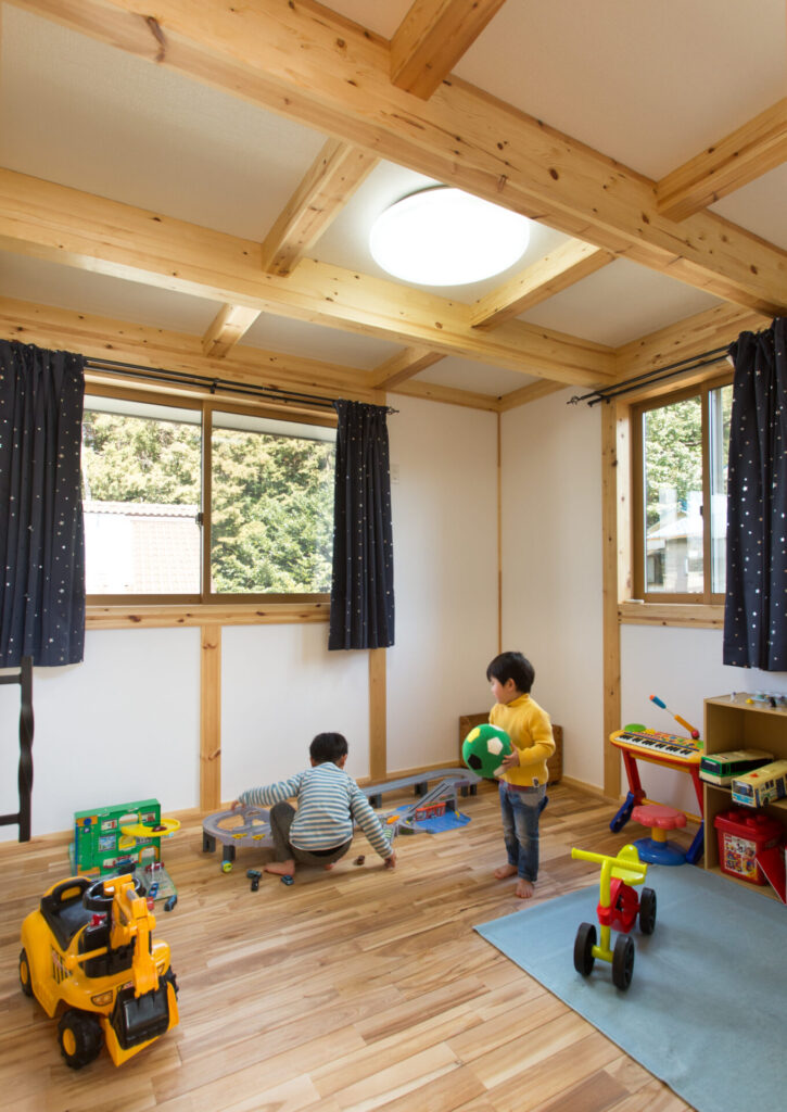 思う存分おもちゃを広げられる、のびのびとした空間。無垢材が、お子様の豊かな感性を育みます。