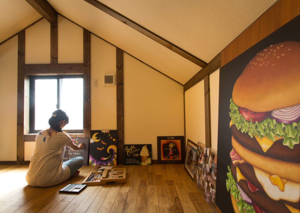 趣味の絵画を思いきり楽しめるアトリエ空間。木の温もりが、落ち着きと豊かなインスピレーションを育みます。