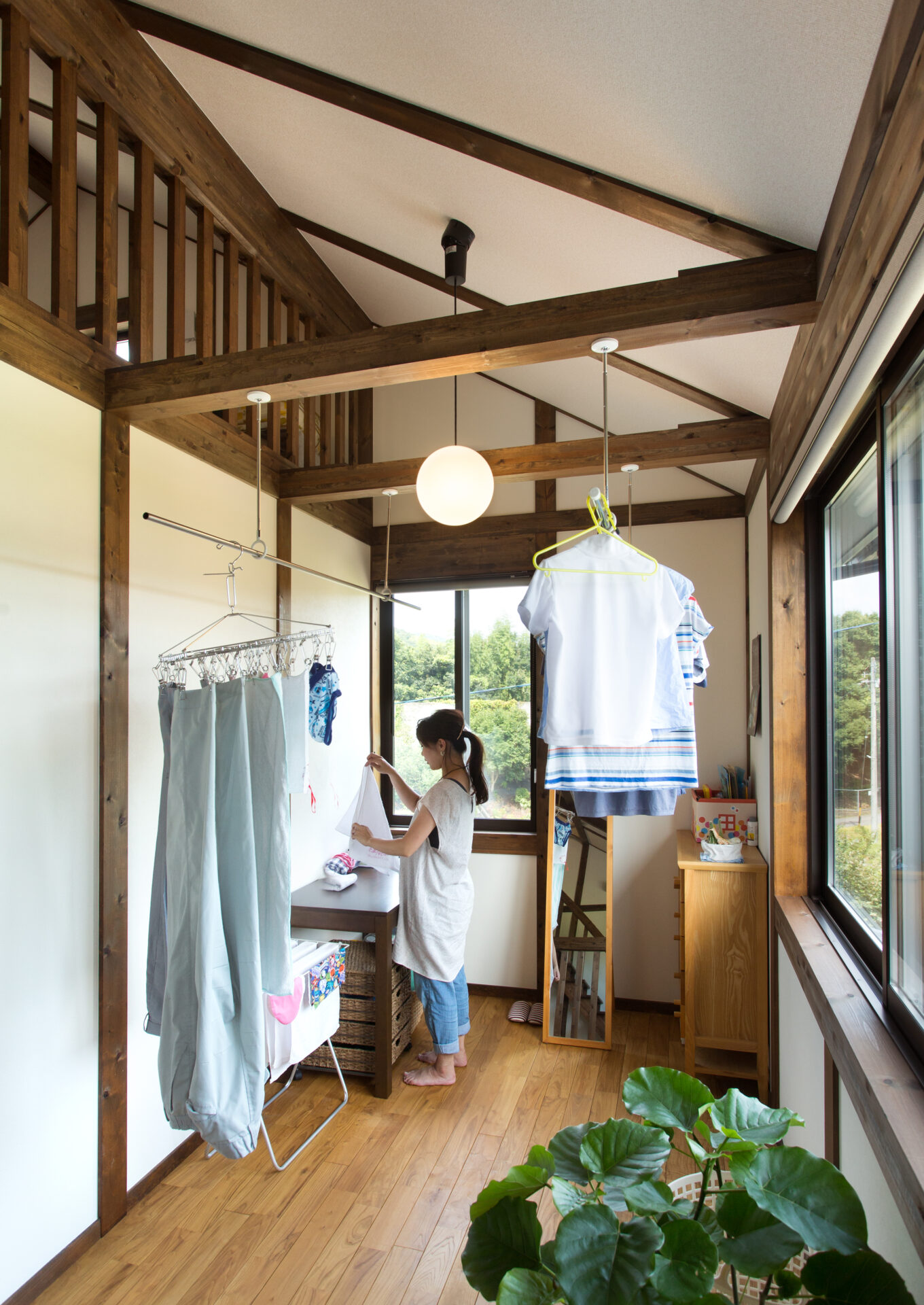 大きな窓から光が差し込む2階ホール。天気を気にせず、洗濯物を干せる嬉しい家事ラクスペースです。