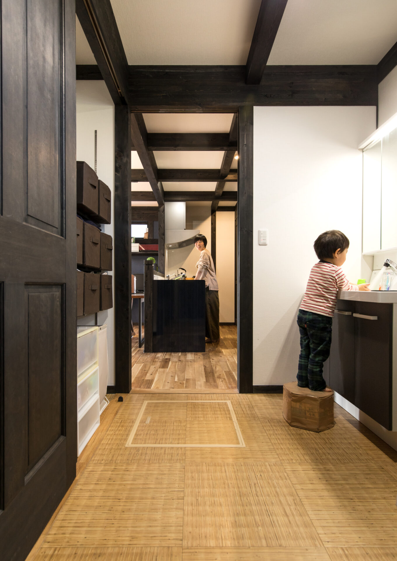 キッチンと洗面所を繋ぐスムーズな動線。お子様の手洗いを見守りながら、安心して家事ができます。