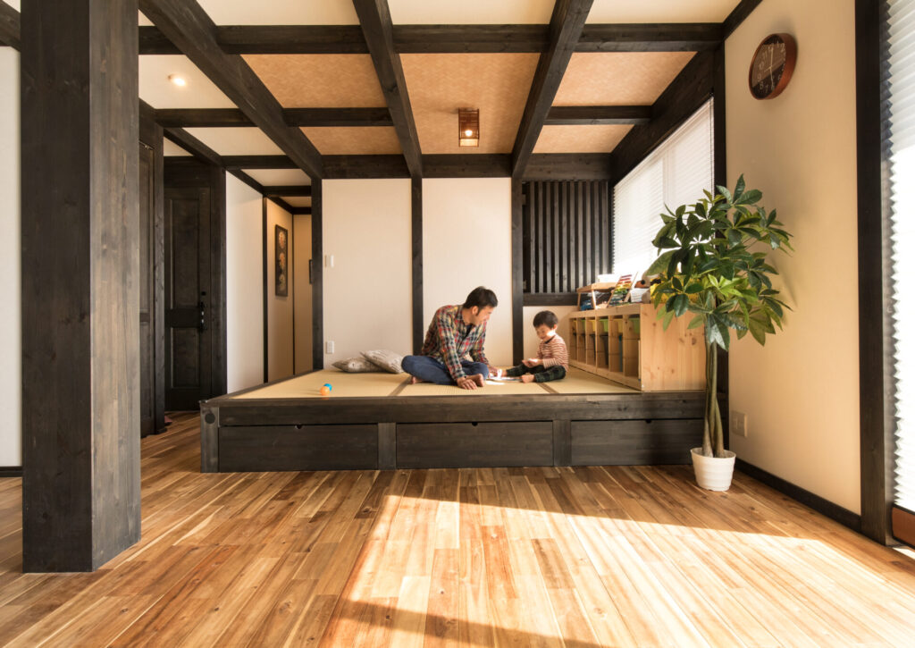 大容量の収納付きの小上がり畳は親子の特等席。一緒に遊んだり、お昼寝したり、絆を深める場所です。