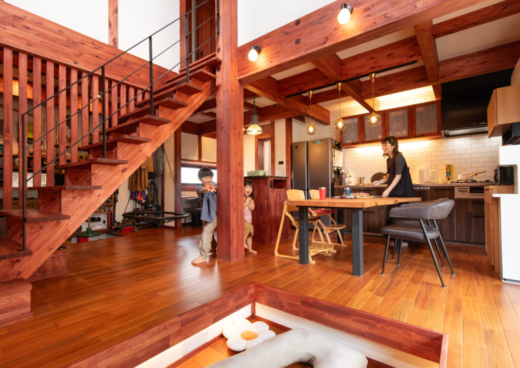 「家族が集う、開放感あふれる木の空間」