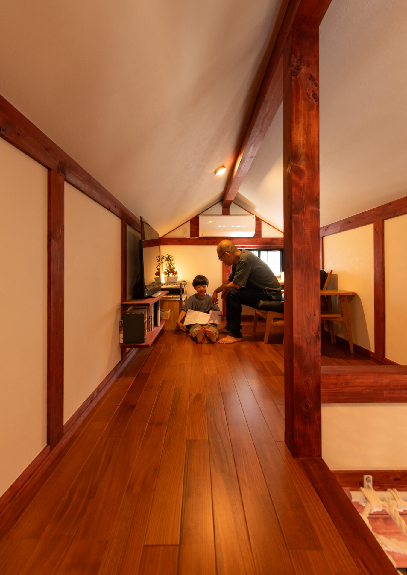 「勾配天井が心地よい屋根裏の隠れ家」